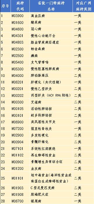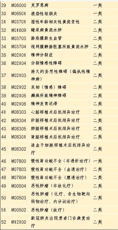 还包括了52个门诊特定病种