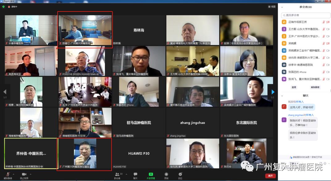12月25日,在中国医学基金会医学临床专科发展专业委员会、中国医院协会民营医院分会、中国医学装备协会民营医院管理分会倡议和指导下,全国社会办医肿瘤科发展协作网(以下简称:联盟)首次筹备会线上预备会成功召开。广州复大肿瘤医院受邀作为联合发起单位,总裁左建生、信息中心主任陈碧江参加本次会议。