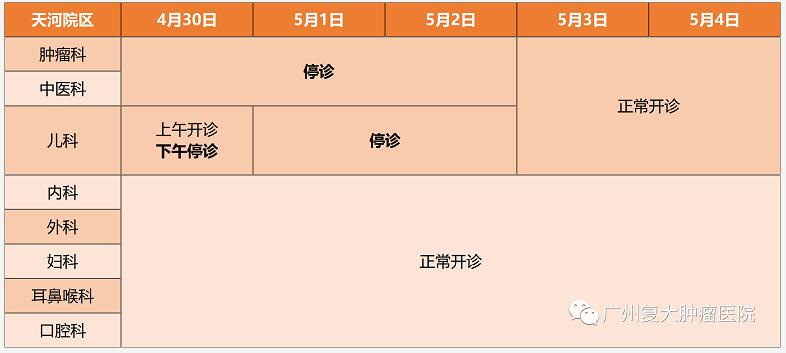 【必看】广州复大肿瘤医院五一假期门诊安排