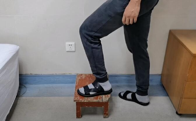 动作:患侧足踩在踏板上,然后支撑起身体。重复直至患侧下肢感觉疲劳。