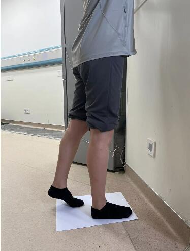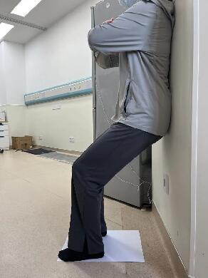 预备: 患肢站立位,手扶固定物以保持衡。