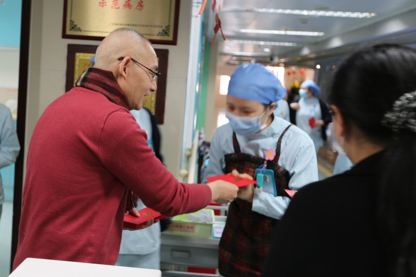 红彤彤的红包寓意着大吉大利、好运连连之意。郑洋总经理表示:“新年上班第一天派发开门红包,希望用满满的仪式感,开启大家一年好彩头。同时非常感谢春节期间,仍坚守在一线的医生、护士及后勤人员,牺牲与家人团聚的时间,为患者守护健康。”