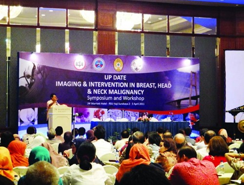 由印尼医学会、印尼放射介入治疗协会、国际放射介入学会印尼分会和 RS HAJISURABAYA 联合举办的头颈部及乳房肿瘤最新治疗国际研讨会于2011年4月2日上午十点在泗水万豪酒店二楼会议厅举行。