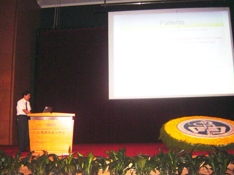 牛立志博士正在大会上用英文作报告